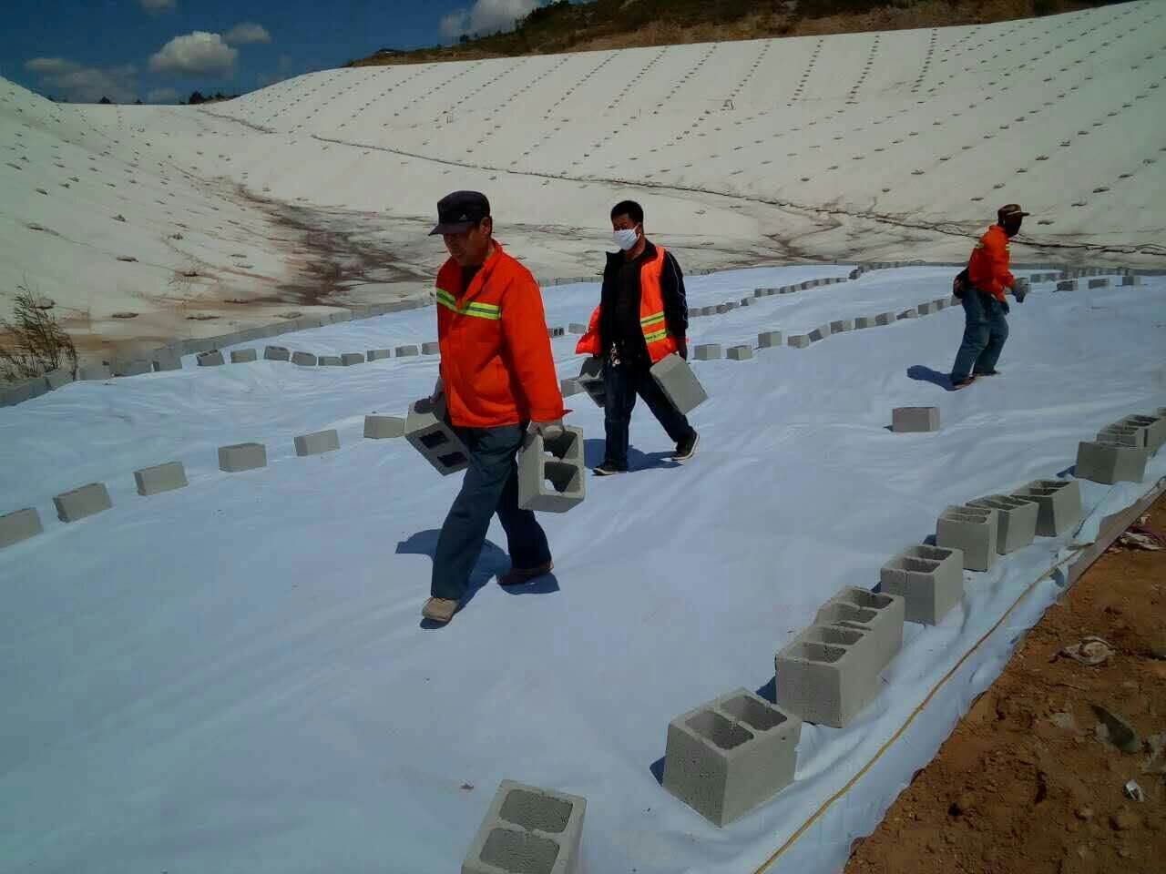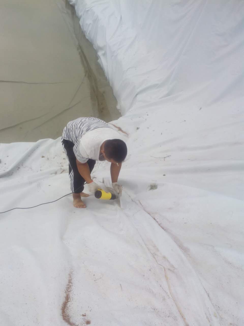 土工膜為低強(qiáng)度、柔性材料,容易在裝卸過(guò)程中受到工具損害,堆放與鋪設(shè)過(guò)程容易受到場(chǎng)地尖銳物的損害,施工人員施工不當(dāng)會(huì)對(duì)土工膜造成損害。